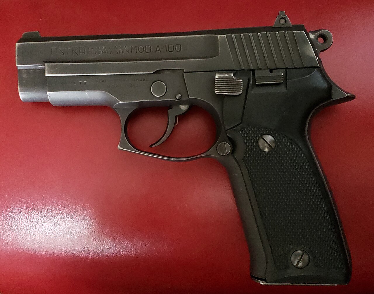 The Astra A-100 is a semi-automatic pistol designed by Astra-Unceta y Cia in 1990. It is classified as a medium difficulty firearm in Gun Guesser.