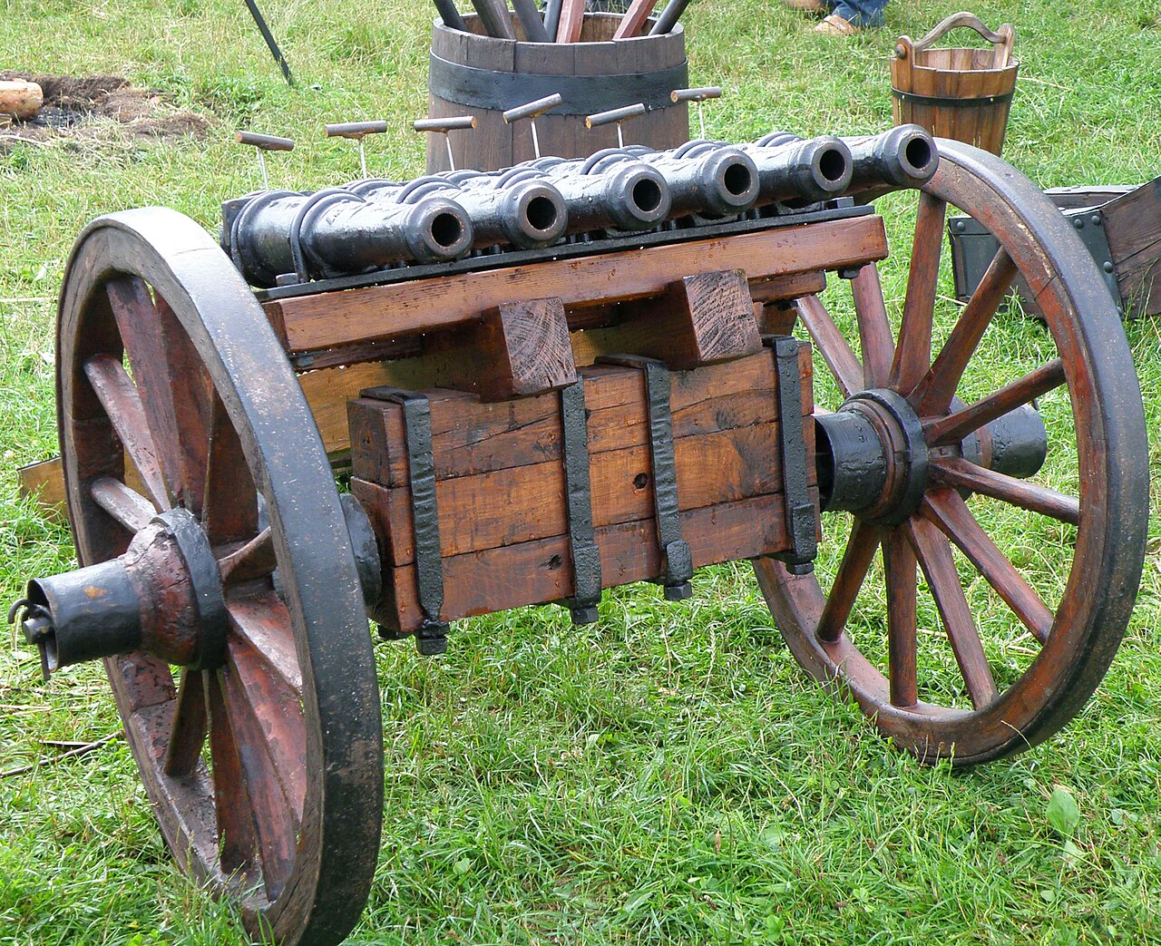 - -A multi-barrel pistol with barrels splayed outward like a bird's foot