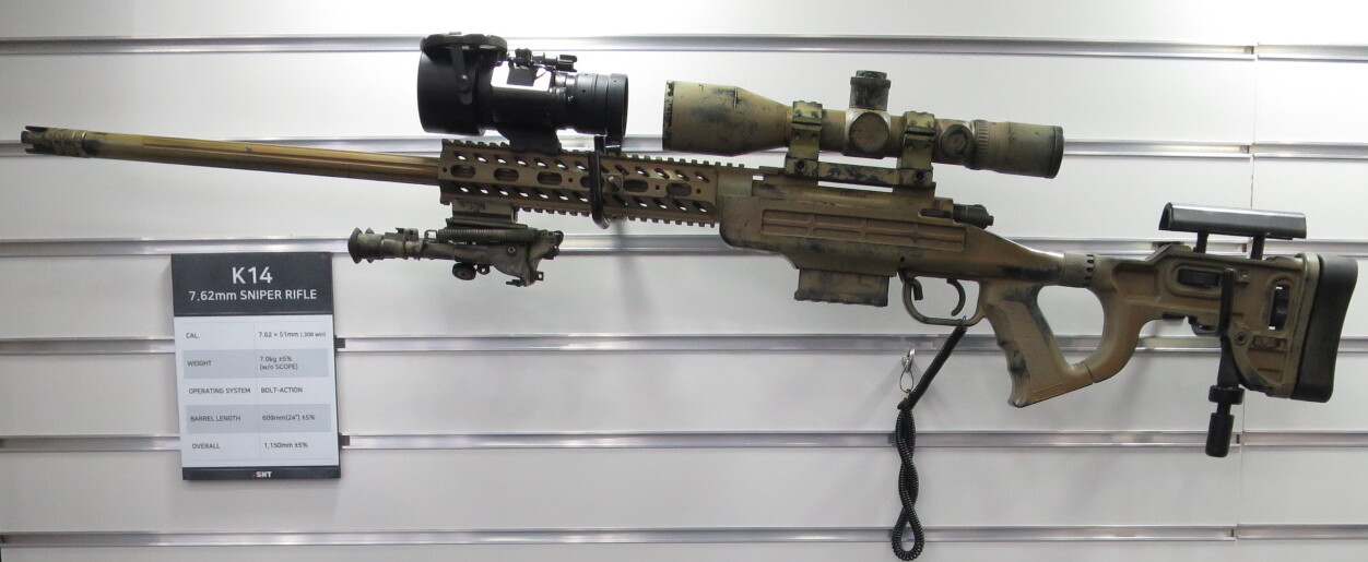 The K14 Sniper Rifle is a sniper rifle designed by S&T Motiv in 2013. It is classified as a hard difficulty firearm in Gun Guesser.